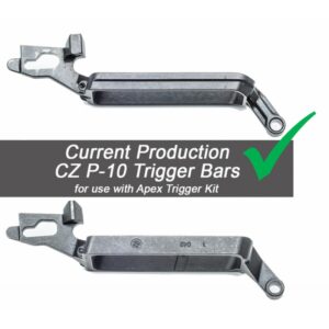 The Action Enhancement Kit for CZ P-10 pistols features the Apex Action Enhancement Trigger paired with an Apex Performance Disconnector and an Apex Slide Cover Plate. The kit offers two trigger pull options depending on which disconnector is installed: